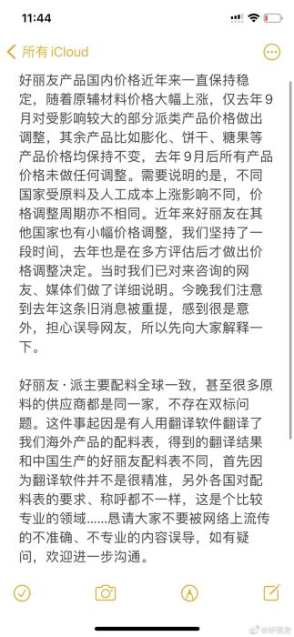 好麗友回應(yīng)漲價(jià)和配料雙標(biāo):不同國(guó)家成本上漲影響不同