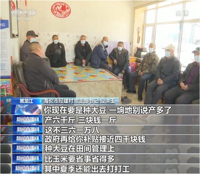 海倫市經建村村民 邵廣金:肯定種大豆了,而且今年補貼還挺多,我們收入也提高了,也為國家作貢獻了。