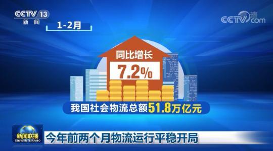 央視網消息(新聞聯播):中國物流與采購聯合會今天(3月24日)公布的數據顯示,今年1—2月,我國物流運行總體平穩,社會物流總額增長較快。今年1—2月,我國社會物流總額51.8萬億元,同比增長7.2%,物流總額增速延續回升態勢,同時明顯高于疫情前2019年水平。從結構看,擴內需、促消費政策效應持續顯現,工業、消費物流需求保持較快增長。1—2月,工業品物流總額同比增長7.5%,較2020—2021年兩年平均增速加快1.4個百分點。消費品制造業物流需求同比增長9.7%,較2020—2021年兩年平均增速加快5.2個百分點。另外,進口物流需求持續回落,但降幅在收窄,物流在促進產業鏈、供應鏈穩定運行中的作用繼續凸顯。