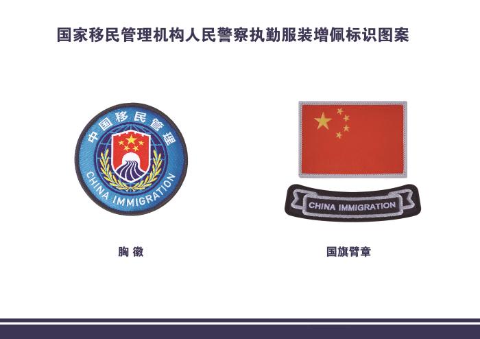 據國家移民管理局有關負責人介紹,國家移民管理機構人民警察按照《公安機關人民警察內務條令》規范著裝、佩戴警銜警號等警用標志,同時根據移民管理執法執勤需要,在執勤服裝上增佩中國移民管理標志胸徽和國旗臂章。中國移民管理標志胸徽位于警號正上方,國旗臂章位于執勤服裝左臂位置,公安臂章位于執勤服裝右臂位置。國家移民管理機構人民警察執勤服裝增佩標識,有利于中外人員及時準確識別、自覺服從配合執法、方便求助服務,有利于移民管理人民警察主動接受廣大人民群眾監督,不斷增強職業榮譽感,更好地履行法律賦予的職責任務。