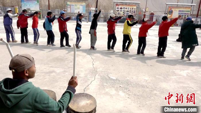 圖為多油完小學生在課余時間練習傳統非遺舞蹈“嘎爾”舞。 貢桑拉姆 攝