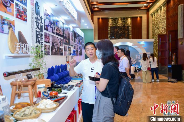 會場外擺放的臨安特色產品。 杜煥祺 攝