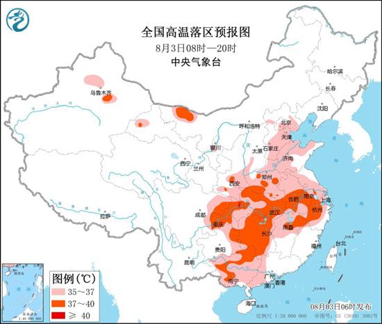 其中今天白天,北京平原地區、天津、河北、河南、山東、陜西南部、湖北、安徽、江蘇、上海、浙江、江西中北部、湖南、貴州東部和南部、重慶、四川東部、廣東西部、廣西等地有35℃以上高溫天氣,其中,河南中南部、安徽中南部、湖北、浙江中西部、江西北部、湖南、重慶、四川東部、廣西北部和西部等地部分地區最高氣溫37~39℃,重慶局地可達40℃以上。中央氣象臺今早繼續發布高溫黃色預警。