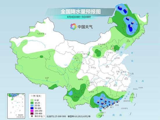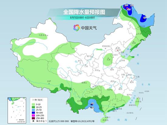 5日,內蒙古東北部、遼寧東部、吉林東部、黑龍江、云南中南部、貴州南部、廣西、廣東沿海等地部分地區有中到大雨,其中,內蒙古東北部、黑龍江北部等地部分地區有暴雨或大暴雨(100~110毫米)。