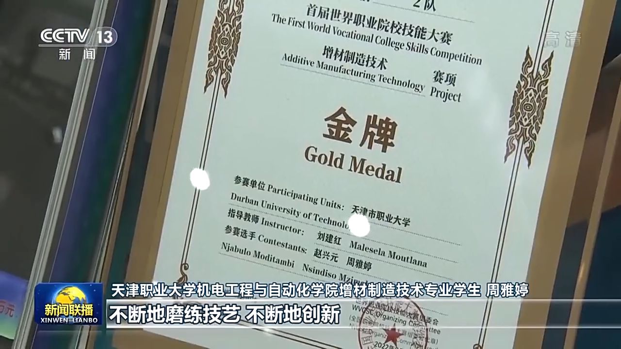 天津職業(yè)大學(xué)機(jī)電工程與自動(dòng)化學(xué)院增材制造技術(shù)專業(yè)學(xué)生 周雅婷:我覺(jué)得我是這個(gè)時(shí)代的幸運(yùn)兒,在(學(xué)校)實(shí)訓(xùn)基地,其實(shí)每天都是實(shí)戰(zhàn),我們的老師也是技能大師。以前我覺(jué)得大國(guó)重器是高不可攀的,當(dāng)我站在世界級(jí)的領(lǐng)獎(jiǎng)臺(tái)上,我才發(fā)現(xiàn),將平凡做到極致,不斷地磨煉技藝、不斷地創(chuàng)新,也是在為制造大國(guó)重器蓄積力量。