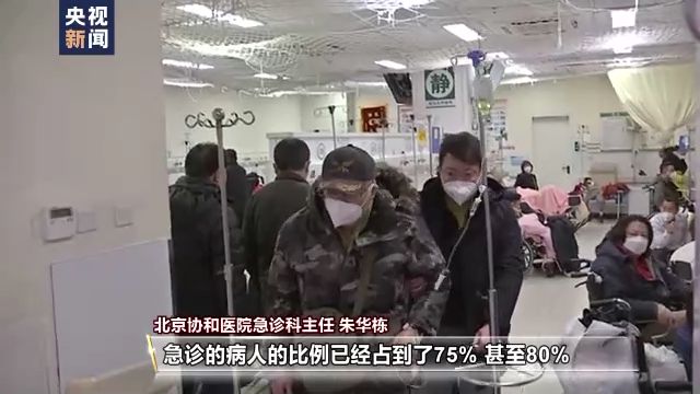 北京協和醫院急診科主任 朱華棟:我從醫大概有30來年了,可以說是最困難的一個時候。病人量多,還有危重程度也超過平時。像在以往的話,一、二、三級占的比例平均平時的話也就是在50%左右。最近這幾天我們監測到一、二、三級這些急診的病人比例已經占到了75%,甚至80%,危重病人的比重高,可以說這是一個前所未有的挑戰。