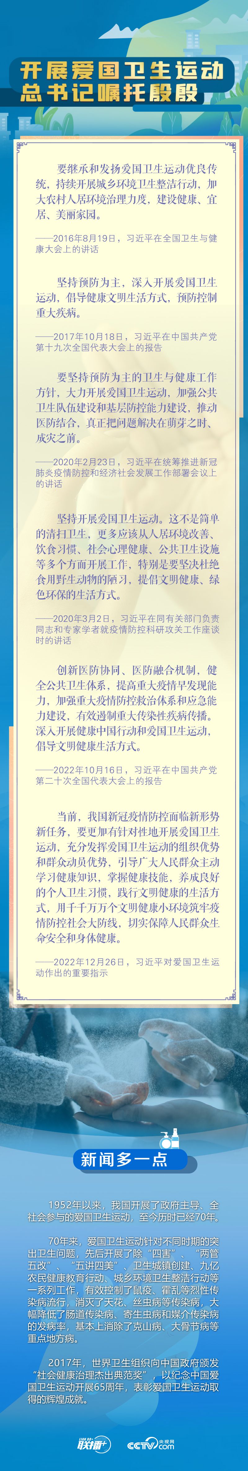 黨的十八大以來,總書記多次對開展愛國衛(wèi)生運動提出明確要求、作出重要部署,飽含人民情懷,央視網(wǎng)《聯(lián)播+》與您一起重溫。