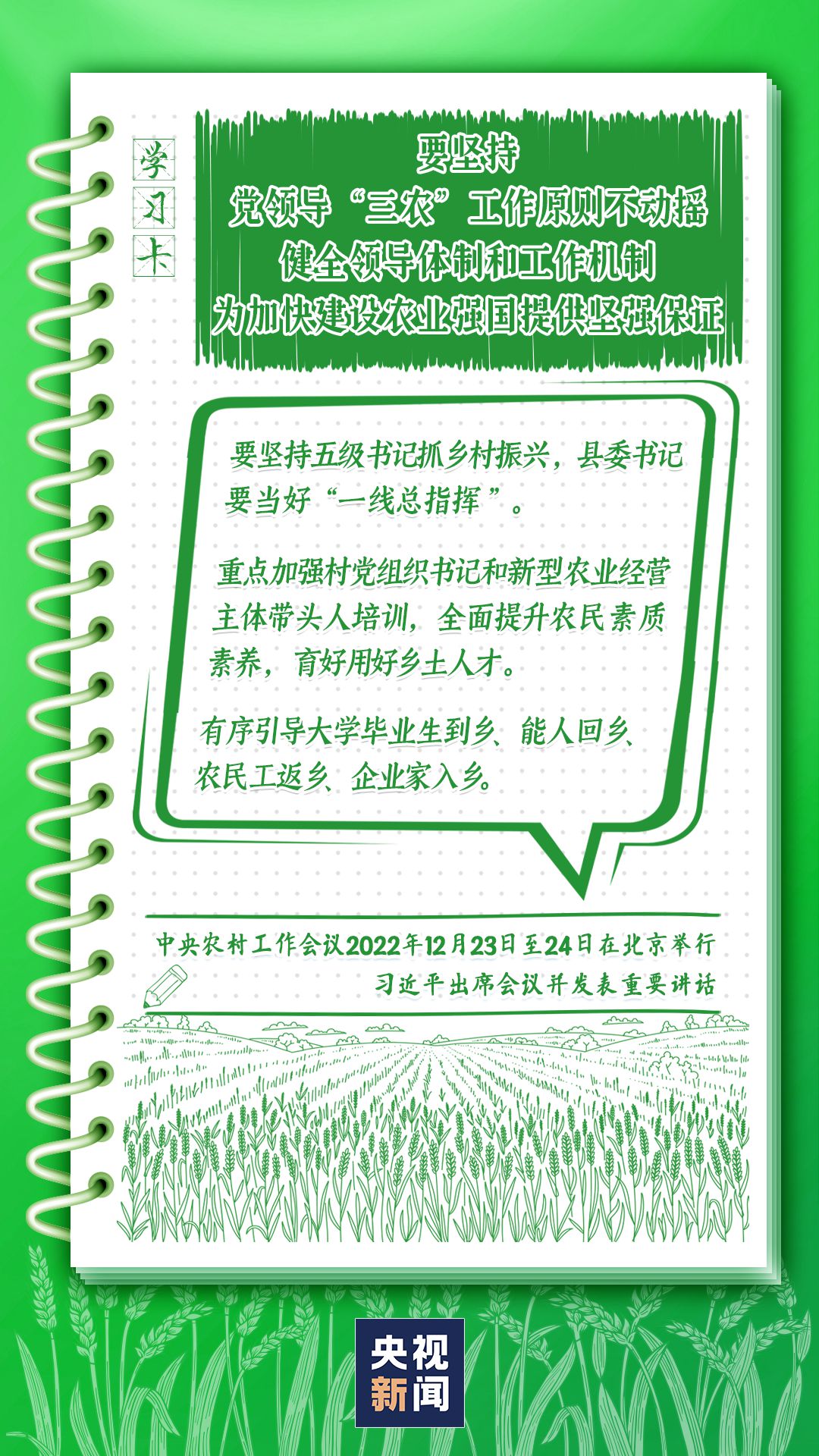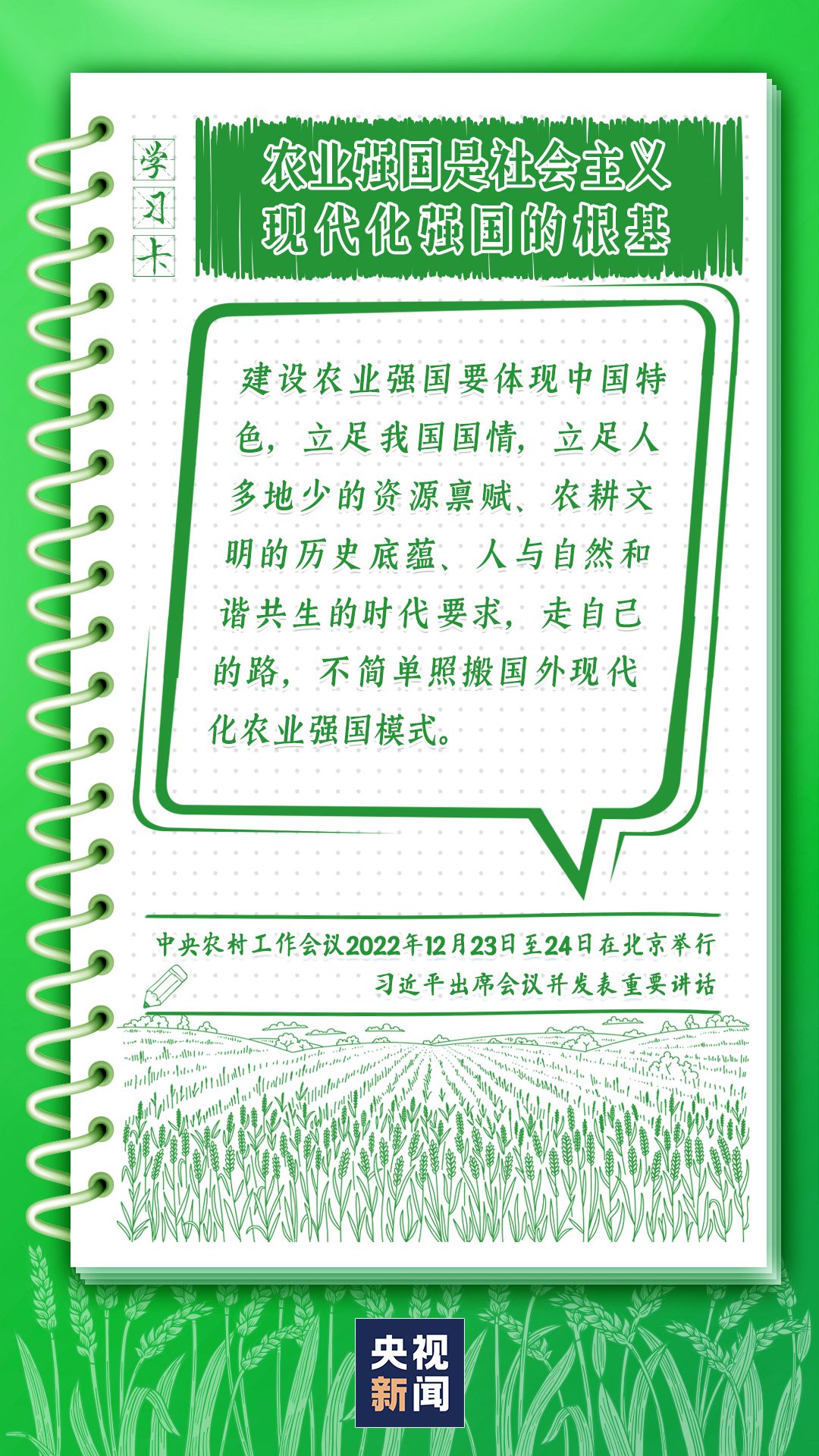 中央農村工作會議12月23日至24日在北京舉行。習近平總書記出席會議并發表重要講話強調,錨定建設農業強國目標,切實抓好農業農村工作。如何建設農業強國?總書記給出了“路線圖”,一起學習↓