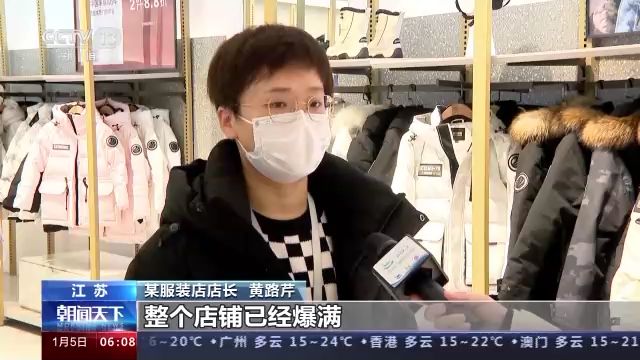 同樣,江蘇多地的商圈客流量也在不斷上漲,在江蘇蘇州工業園區,前來采購新裝的消費者,手里拎著大大小小的購物袋。由于客流量較大,一些商店采取了排隊限流措施。在蘇州市觀前街的各大商場里,商家推出了優惠促銷活動,冬衣、取暖器等成為熱銷品。
