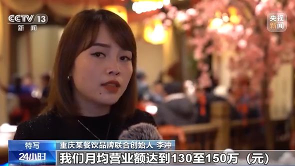 重慶某餐飲品牌聯合創始人 李沖:比如說我們這個店,我們在疫情前,最好的時候我們月均營業額達到130萬元—150萬元,目前的話可能恢復到70%左右。