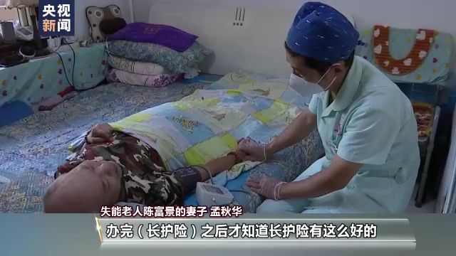失能老人陳富景的妻子 孟秋華:護理員一來就幫他揉,我就輕松多了,白天來的好幾個小時我能休息,辦完長護險后才知道長護險這么好,又解決家庭經濟困難,還有人幫著照顧,我說老頭子有救了。