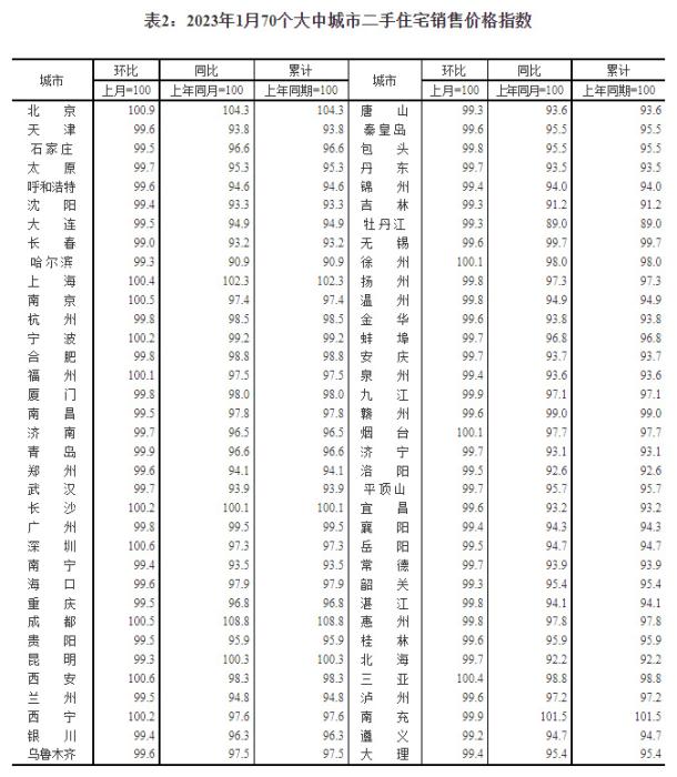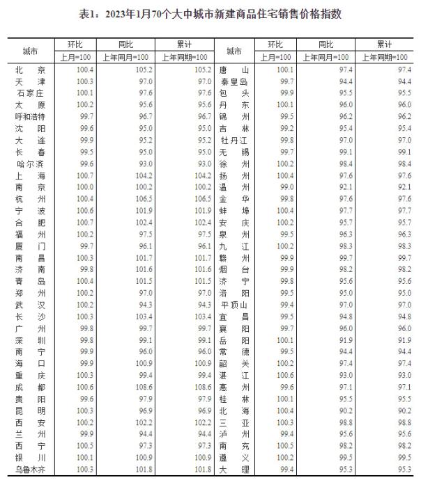 2023年1月份,70個大中城市中商品住宅銷售價格環比上漲城市個數增加;一線城市商品住宅銷售價格環比轉漲、二三線城市環比降勢趨緩,一線城市商品住宅銷售價格同比上漲、二三線城市同比下降。