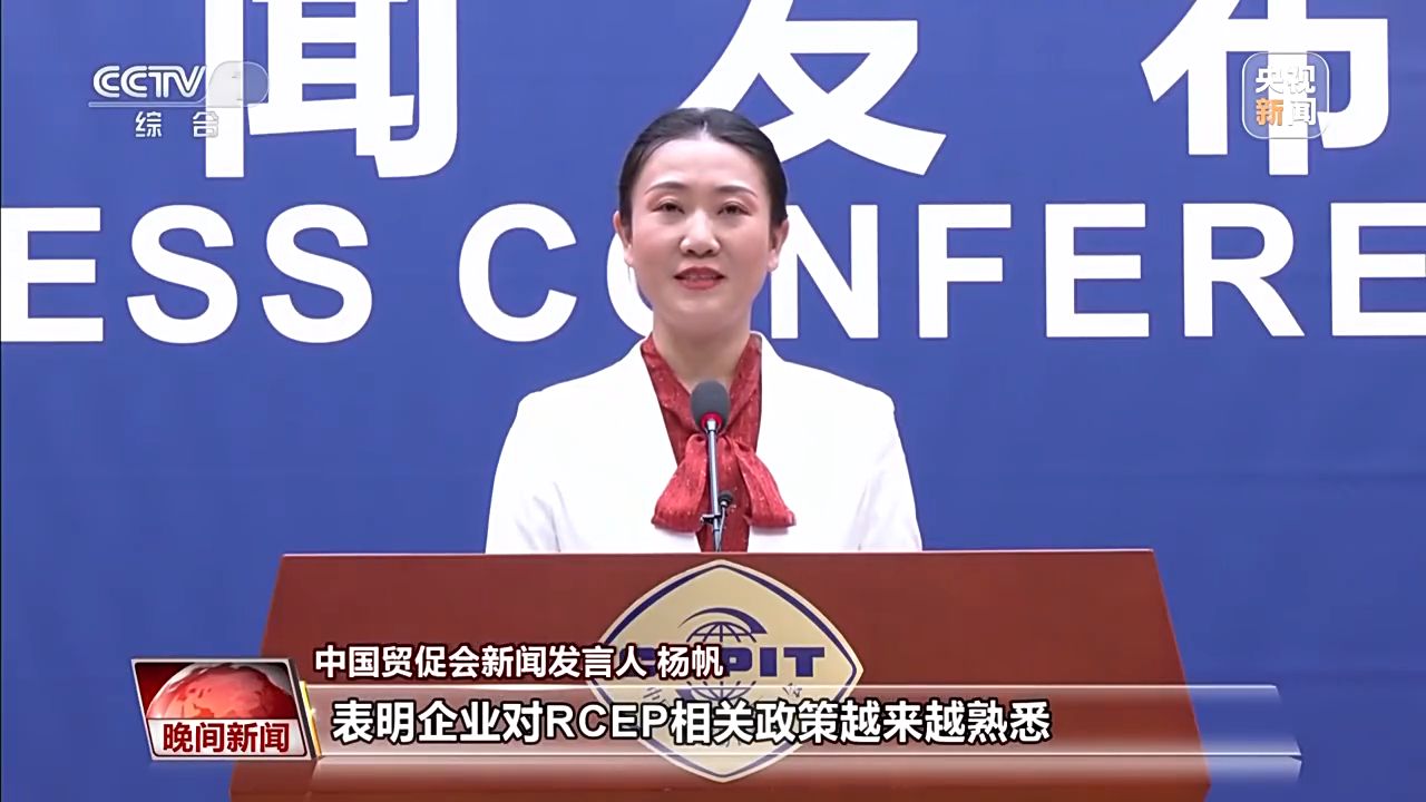 中國貿促會新聞發言人 楊帆:表明企業對RCEP相關政策越來越熟悉,政策紅利正在逐步釋放。