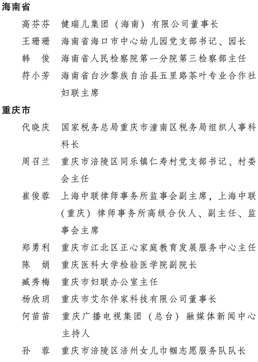 2022年度全國三八紅旗手標兵、全國三八紅旗手、全國三八紅旗集體全名單公布