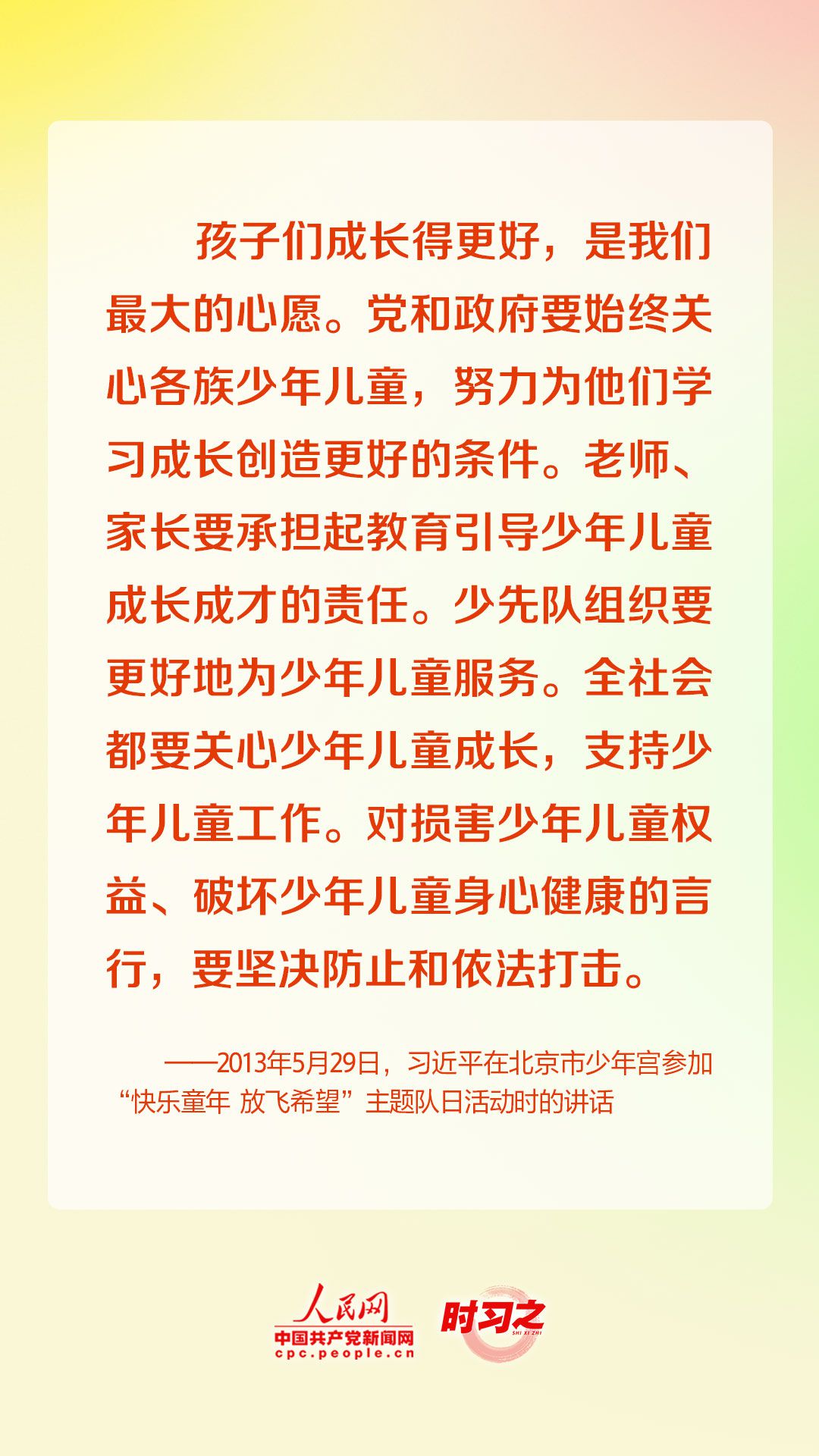 少年兒童是祖國的未來,是中華民族的希望。一直以來,習近平總書記十分關心廣大少年兒童的健康成長,多次在不同場合表達對少年兒童的殷切期望與濃濃關愛。在“六一”國際兒童節來臨之際,讓我們共同回顧總書記對少年兒童的殷切寄語。