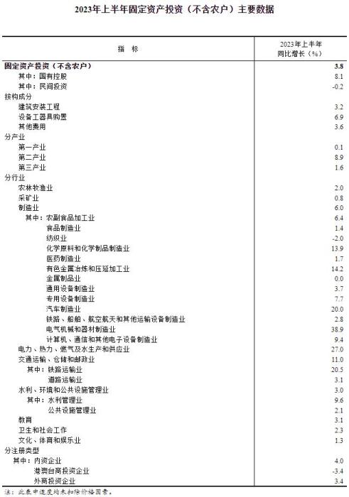 國家統計局:上半年全國固定資產投資增長3.8%