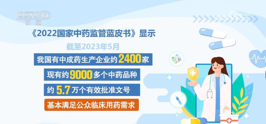 《2022國家中藥監管藍皮書》顯示,截至2023年5月,我國有中成藥生產企業約2400家,現有約9000多個中藥品種,約5.7萬個有效批準文號,基本滿足公眾臨床用藥需求。