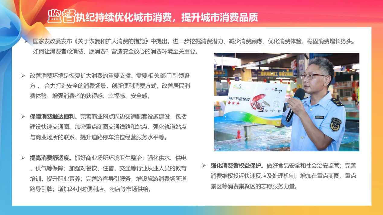 《報告》指出,改善消費環境是恢復擴大消費的重要支撐。需要相關部門引領各方,合力打造安全的消費場景,創新便利消費方式,改善居民消費體驗,增強消費者的獲得感、幸福感、安全感。
