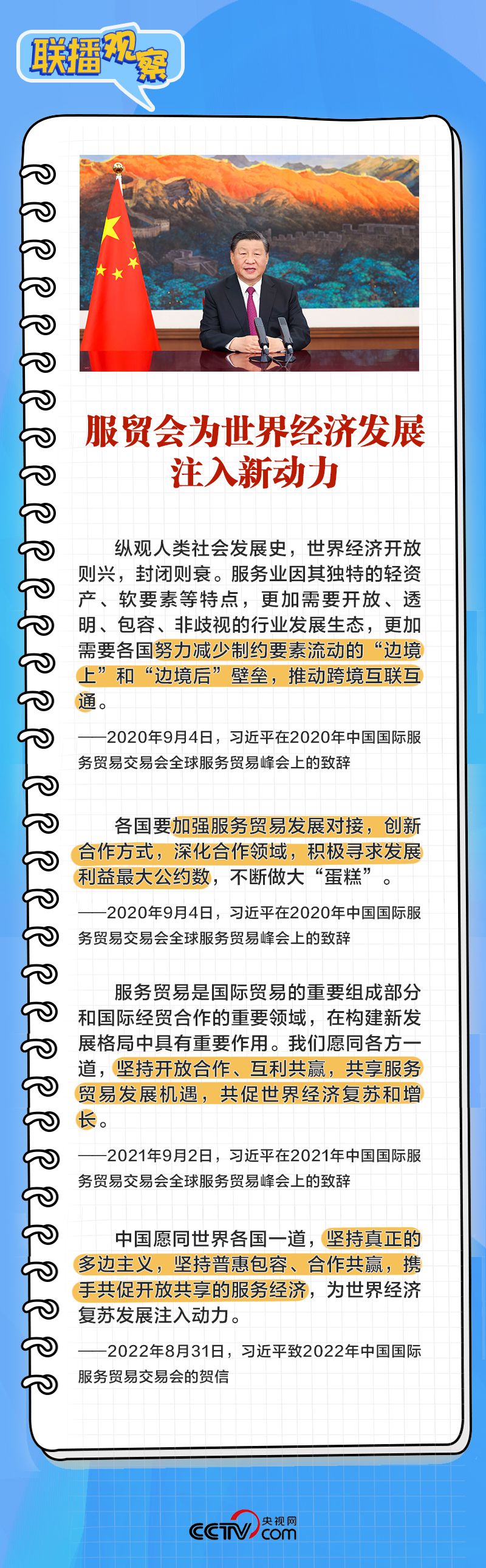 |聯播+|“當前,百年變局加速演進,世界經濟復蘇動力不足。服務貿易是國際貿易的重要組成部分,服務業是國際經貿合作的重要領域”。9月2日上午,習近平主席在北京向2023年中國國際服務貿易交易會全球服務貿易峰會發表視頻致辭。