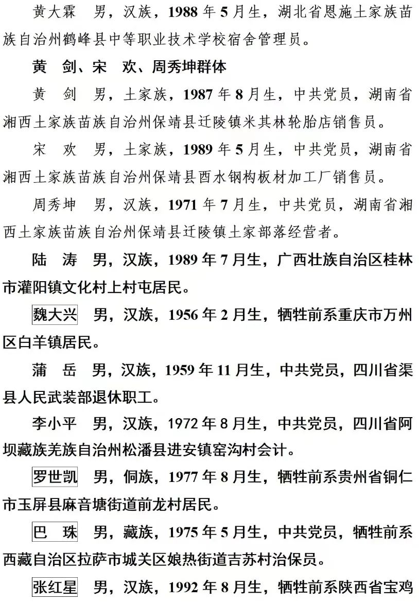上榜勇士中,有兩度下到沼氣彌漫的污水井救人英勇犧牲的工程師蔡文;有因救火導致二度燒傷的“00后”小伙兒梁博;有身患腿疾仍潛水勇救溺水幼童的七旬老人顧寶賢;有進入充滿毒氣的罐體救人不幸犧牲的李滕輝;有協助警方追捕毒販受重傷實施開顱手術的崔紅超;有勇救落水群眾獻出寶貴生命的肖坤琦、徐輝、楊傳義、劉學家、郭字宏、李士存……勇士們在危急時刻挺身而出、見義勇為,保護國家利益、集體利益和人民群眾生命財產安全,他們的事跡可歌可泣,感人肺腑。
