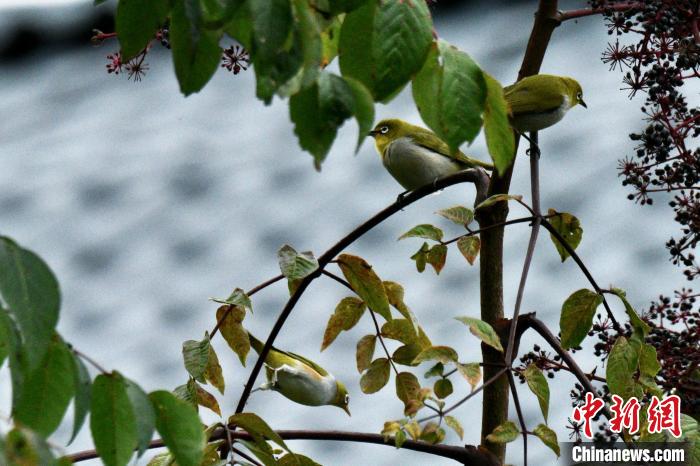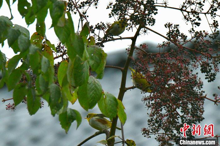 圖為在云南大山包黑頸鶴國家級自然保護區(qū)拍攝到的紅脅繡眼鳥和灰腹繡眼鳥。 吳太平 攝