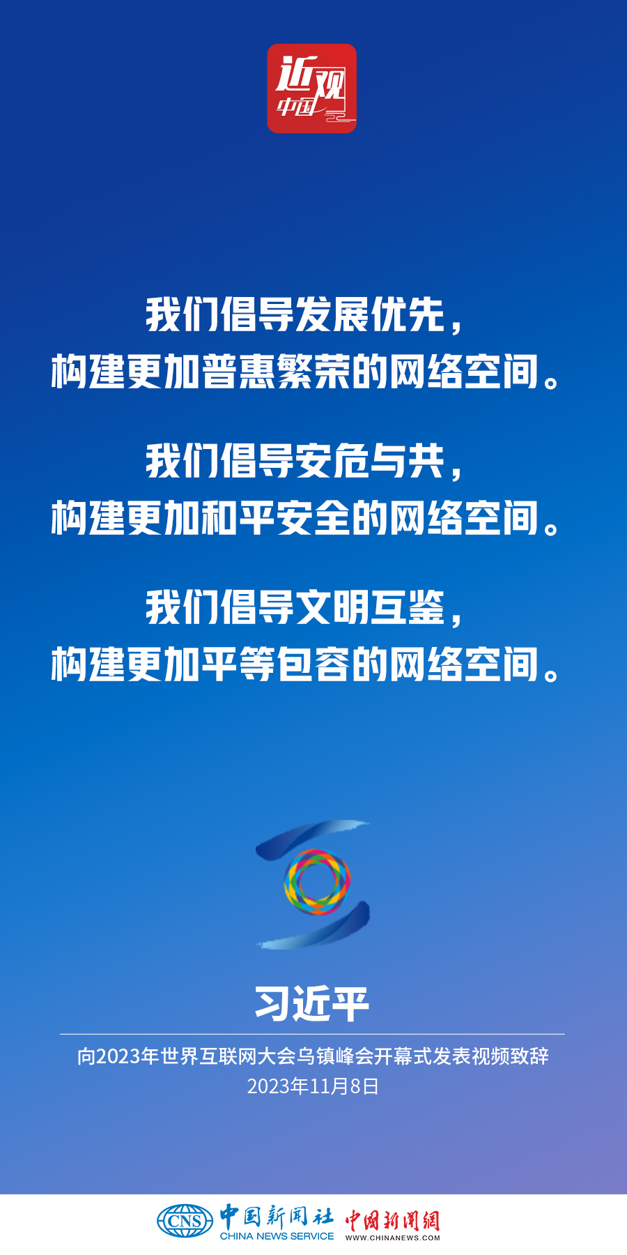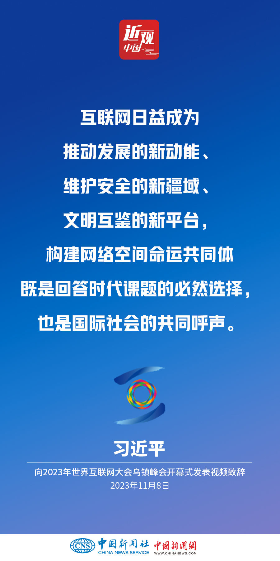 11月8日上午,國家主席習近平向2023年世界互聯網大會烏鎮峰會開幕式發表視頻致辭。他指出——