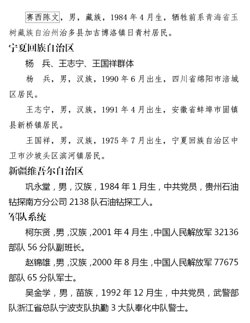 上榜勇士中有勇斗持刀犯罪嫌疑人身負重傷的張照杰、姚玉龍、王沖、王永芳;有從高橋跳水救人的周中磊、曾文文、周海;有從隨時可能爆炸的事故車輛中救出司機母子的湯益鑫;有冒著煤氣罐爆炸危險制服劫持孩子歹徒的蔡國榮;有救援被困電梯內同事而導致左小腿截肢的翟元敏;有休假期間水下連續救人的現役軍人柯東賢、吳金學、趙錦雄;更有見義勇為英勇犧牲的李偉倫、張嘉俊、張可可、李峰武、安西德、何同猛、曾維龍、胡喜明、李振華、東周才仁、賽西陳文11位同志。勇士們見義勇為事跡鼓舞人心、振奮精神、催人奮進。他們用血汗甚至生命秉承、詮釋了中華民族傳統美德,用奮不顧身的實際行動踐行了社會主義核心價值觀。