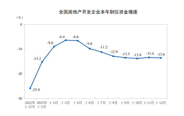 2023年,房地產開發企業到位資金127459億元,比上年下降13.6%。其中,國內貸款15595億元,下降9.9%;利用外資47億元,下降39.1%;自籌資金41989億元,下降19.1%;定金及預收款43202億元,下降11.9%;個人按揭貸款21489億元,下降9.1%。
