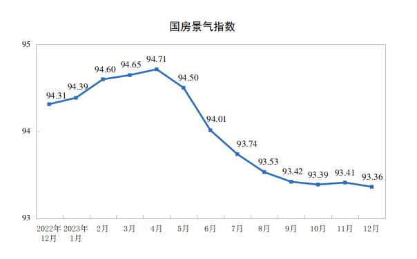2023年12月份,房地產開發景氣指數(簡稱“國房景氣指數”)為93.36。