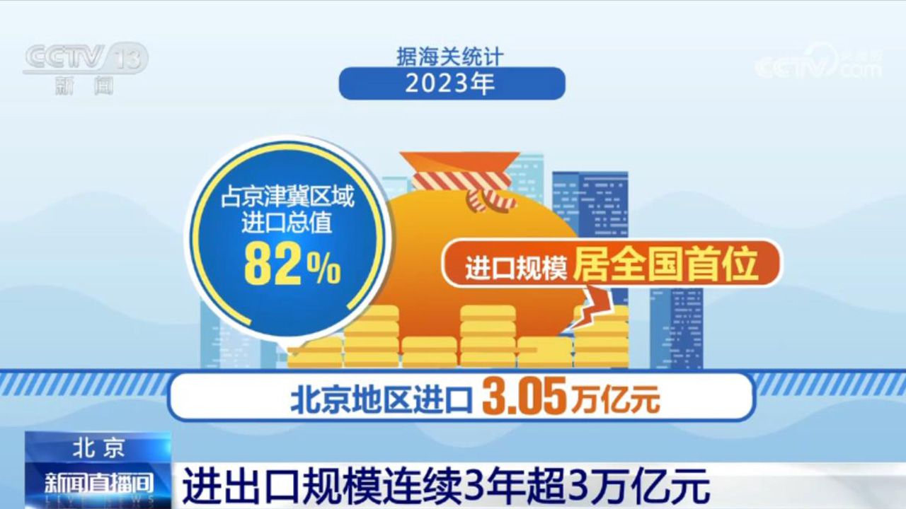 作為京津冀發展核心的北京地區,2023年進出口規模連續第三年突破3萬億元,再創歷史新高。