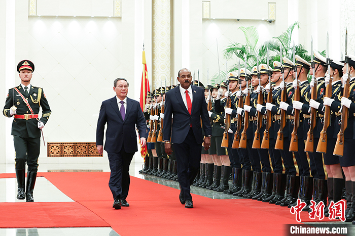 會談前,李強在人民大會堂北大廳為布朗舉行歡迎儀式。