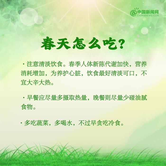 春天是萬物復蘇的季節,也是調養身體的好時節。①每天保證6~8小時的睡眠,避免熬夜;②適當進行一些戶外活動,曬太陽、踏青賞景等;③不過早減衣,穿衣注意下厚上薄;④注意清淡飲食,多吃蔬菜,多喝水……春季養生要注意什么?詳戳↓↓