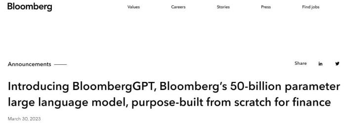 彭博是一家全球商業、金融信息和新聞資訊提供商。3月30日,該公司發布了一篇關于BloombergGPT開發情況的研究論文,詳細介紹了這一大規模生成式人工智能(AI)模型。該大語言模型(LLM)專門針對各類金融數據進行訓練,以全方位支持金融領域的自然語言處理(NLP)任務。