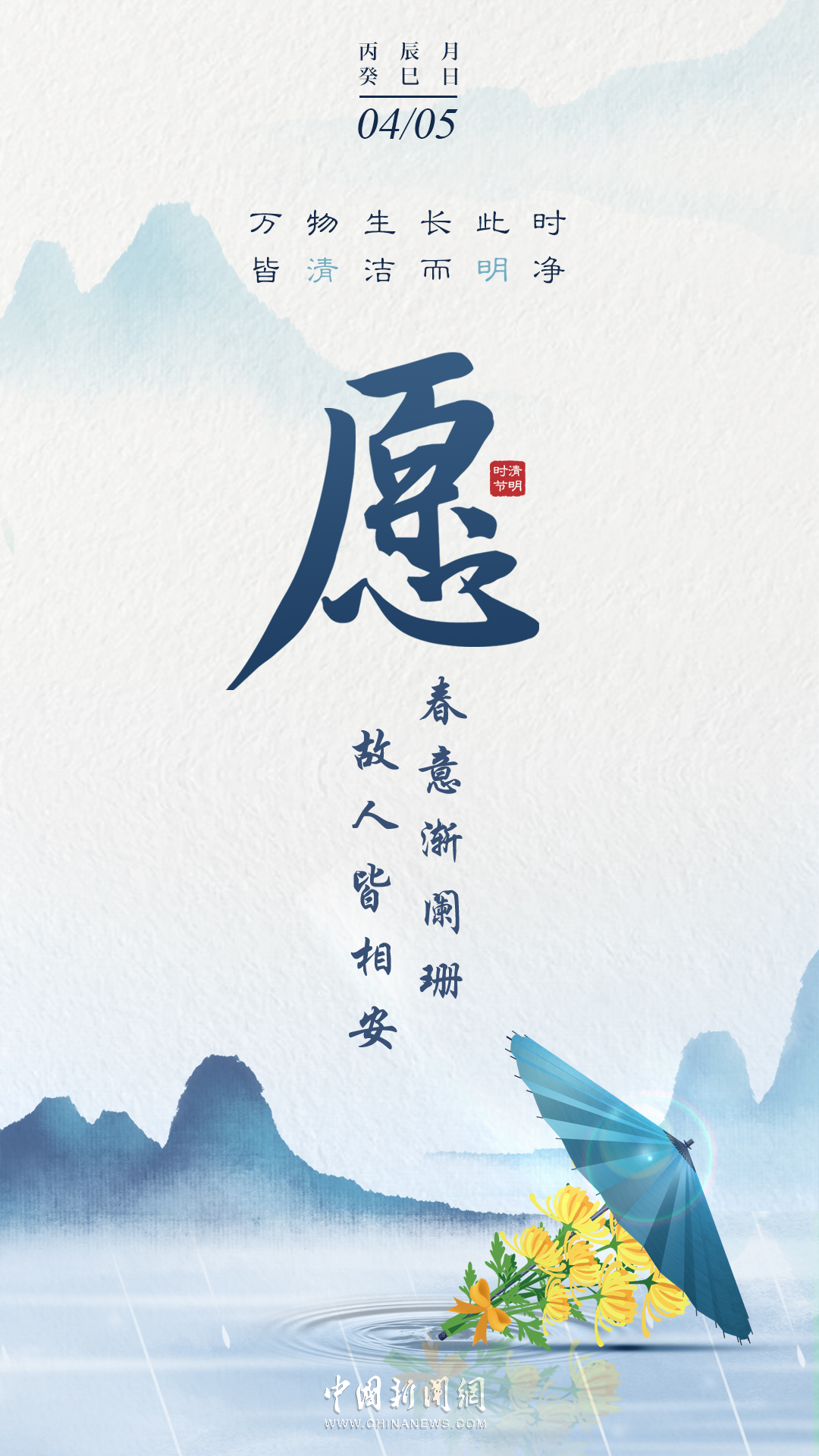 萬物生長此時,皆清潔而明凈,故謂之清明。桐花開,虹始見,草長鶯飛時,攜好友二三逐紅花,穿垂柳,紛紛春雨和縷縷清風化盡了路上行人的哀愁事。今日清明,愿萬里氣清景明,你我心清目明。
