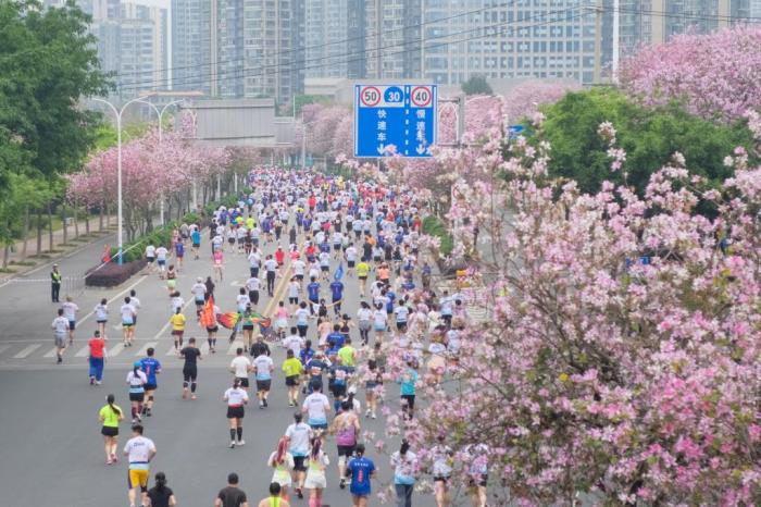 趁著柳州最美時(shí)節(jié),2023柳州馬拉松暨警察馬拉松4月9日開(kāi)跑。該市獨(dú)特的洋紫荊盛開(kāi)路段串聯(lián)成馬拉松賽道,參賽選手們一邊盡情奔跑,一邊領(lǐng)略城市獨(dú)特風(fēng)景。該次比賽吸引中國(guó)各地2萬(wàn)人匯聚柳州,亦促進(jìn)當(dāng)?shù)亟?jīng)濟(jì)發(fā)展。