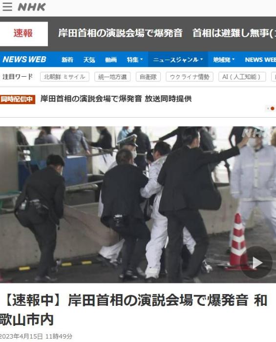 中新網4月15日電(記者 孟湘君 張乃月)當地時間15日,日本首相岸田文雄在和歌山市準備進行演講時,現場突然傳出爆炸聲。岸田文雄隨后安全撤離并更換演講場地,準備繼續演講活動。