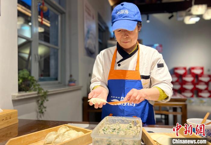 在山東煙臺(tái)一家水餃店,廚師在包鲅魚水餃。 中新社記者 王嬌妮 攝