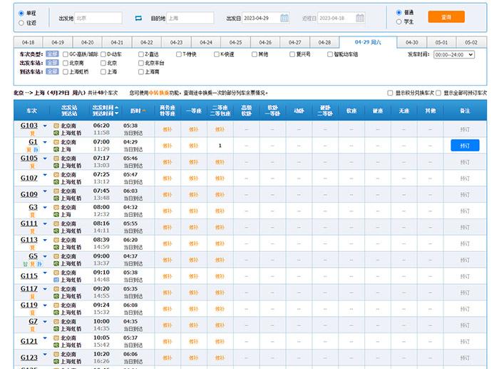 中新財經18日登錄12306官網查詢發現,4月29日北京-上海車票已幾乎全部售罄。
