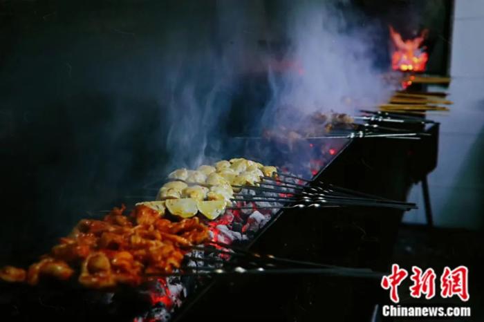 烤羊肉串。何倩楠 攝