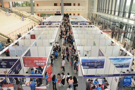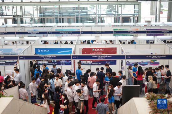 4月22日,在位于越南首都河內的國家會議中心,留學咨詢者絡繹不絕。新華社記者 陶軍 攝