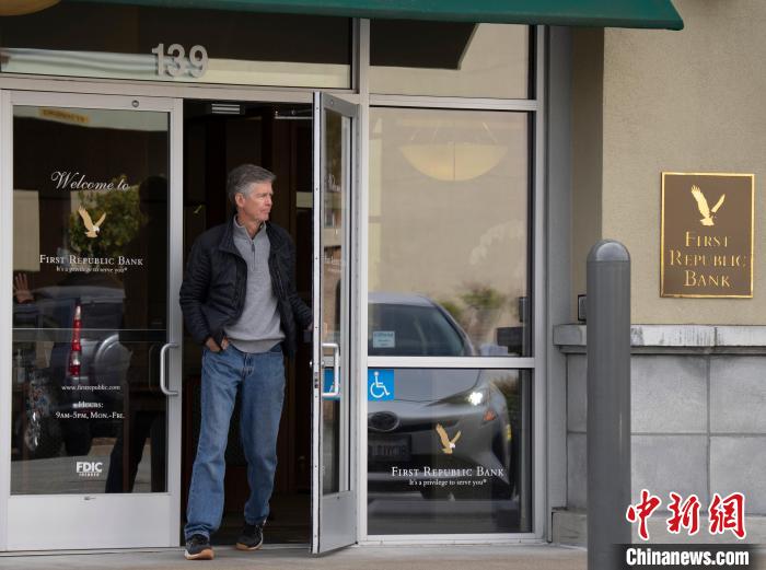 當地時間5月1日,一名男子走出位于美國加州米爾布雷市的一家第一共和銀行。 中新社記者 劉關關 攝