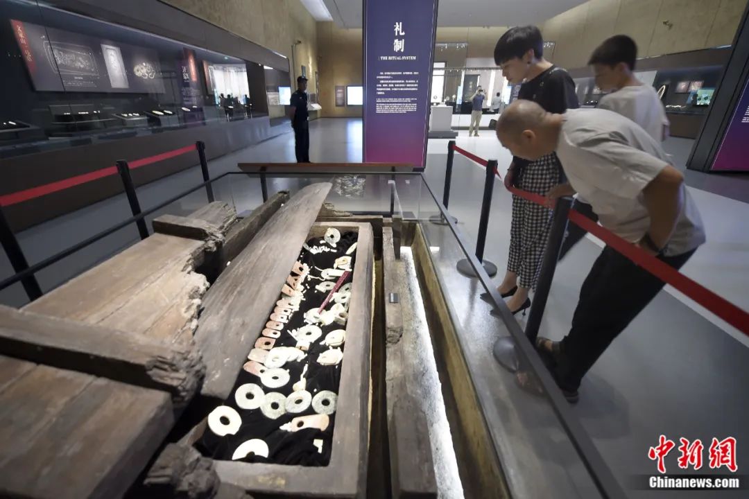 觀眾參觀反山遺址14號墓葬復原場景。李忠 攝