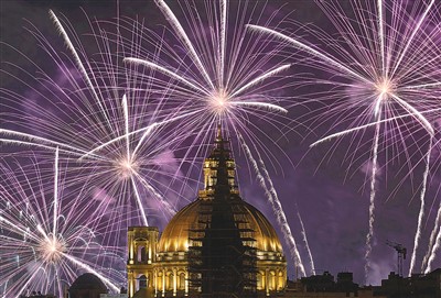近日,馬耳他國際煙花節在馬耳他首都瓦萊塔舉行。圖為瓦萊塔大港上空的煙花。