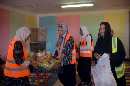 5月2日,在埃及南部阿斯旺省,工作人員為逃離蘇丹進入埃及的難民準備救濟包裹。新華社發(拉德萬攝)