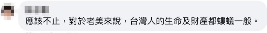 “對于老美來說,臺灣人的生命及財產(chǎn)都螻蟻一般。”