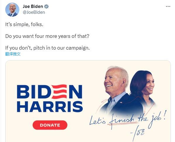 CNN注意到,在特朗普的直播結束后不久,美國總統拜登在社交媒體上發出了政治籌款呼吁,并配文稱,“很簡單,伙計們。 你還想再那樣過四年嗎?如果你不喜歡,請參與我們的競選活動?!?/p>