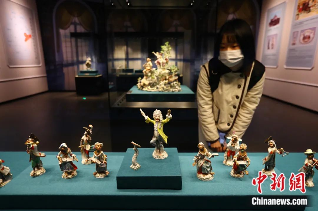 2021年1月15日,在江西省博物館新館展出的“白色金子·東西瓷都——從景德鎮到梅森瓷器大展”吸引參觀者。展覽講述了中國景德鎮、德國梅森兩個瓷器發源地,再現瓷器發展歷程和中國瓷器對世界的影響。劉占昆 攝