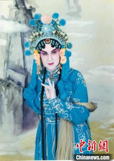 2004年,林莎莉在北京工作之余化上京劇妝容拍照體驗中國文化。(受訪者供圖)