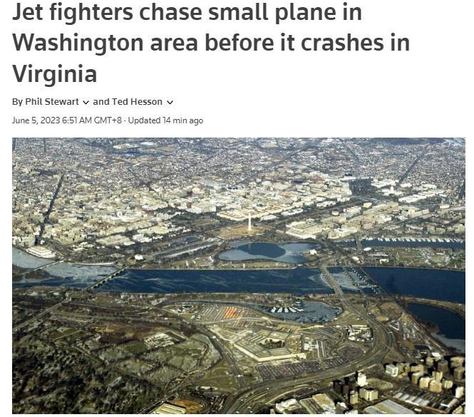 北美防空聯合司令部 (NORAD)在聲明中說,美軍試圖與塞斯納飛機上的飛行員建立聯系,直至該飛機后來在弗吉尼亞州墜毀。此外,F-16噴氣式戰斗機獲準以超音速飛行,由此引發音爆。多家美媒稱,音爆引起了美國首都地區許多居民的恐慌。