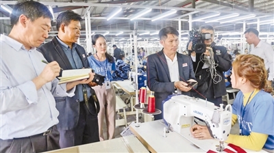 圖為中老媒體記者在萬象賽色塔綜合開發區進行聯合采訪。